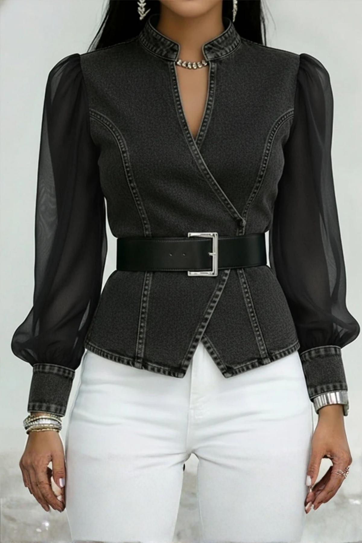 Manches longues en tissu semi-transparent