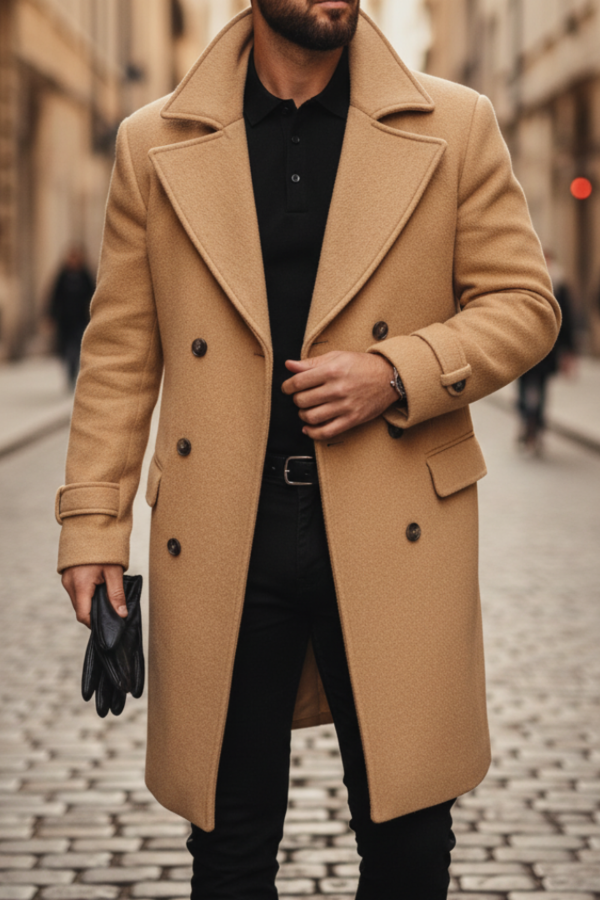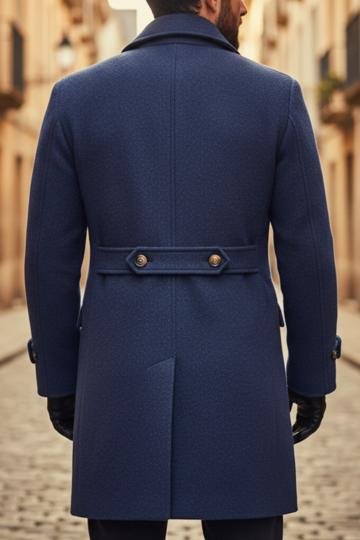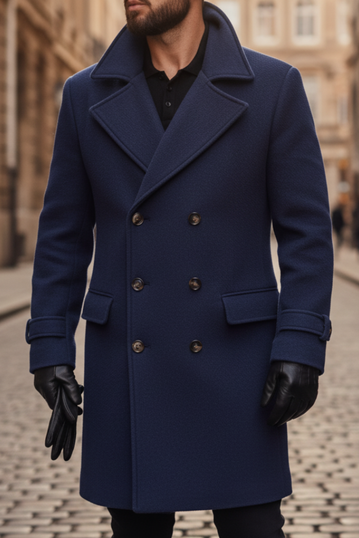 Design : Coupe croisée avec revers et boutons pour un look classique.