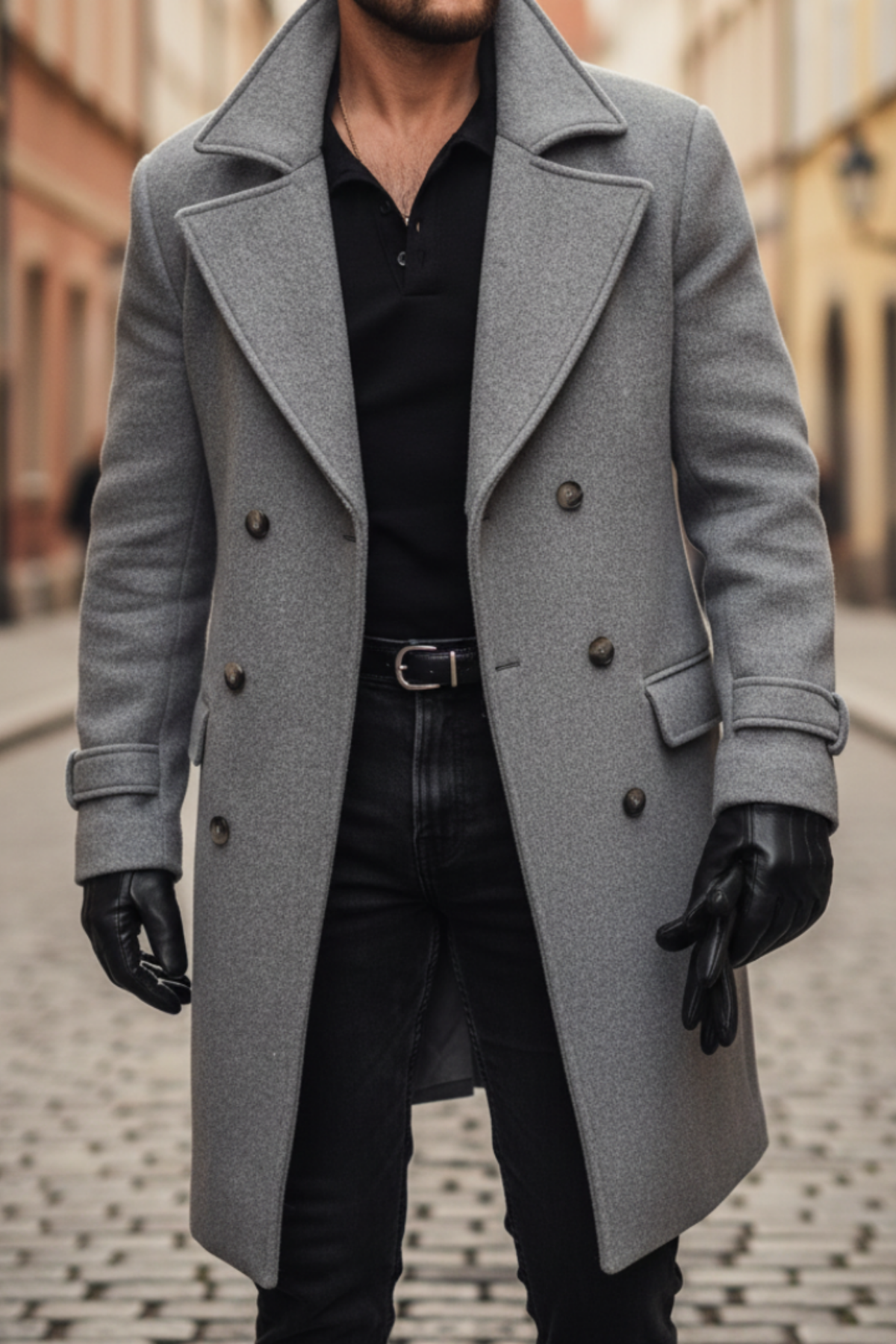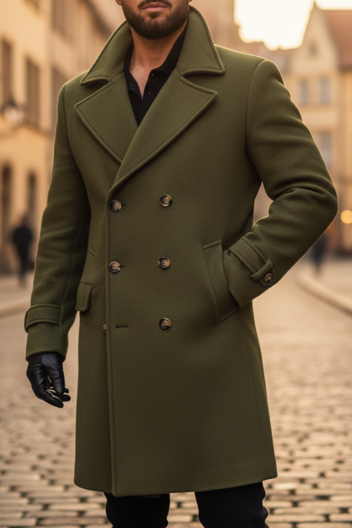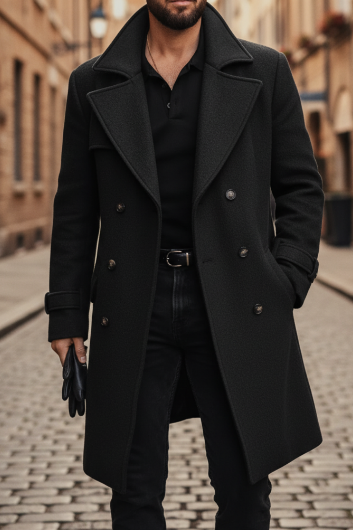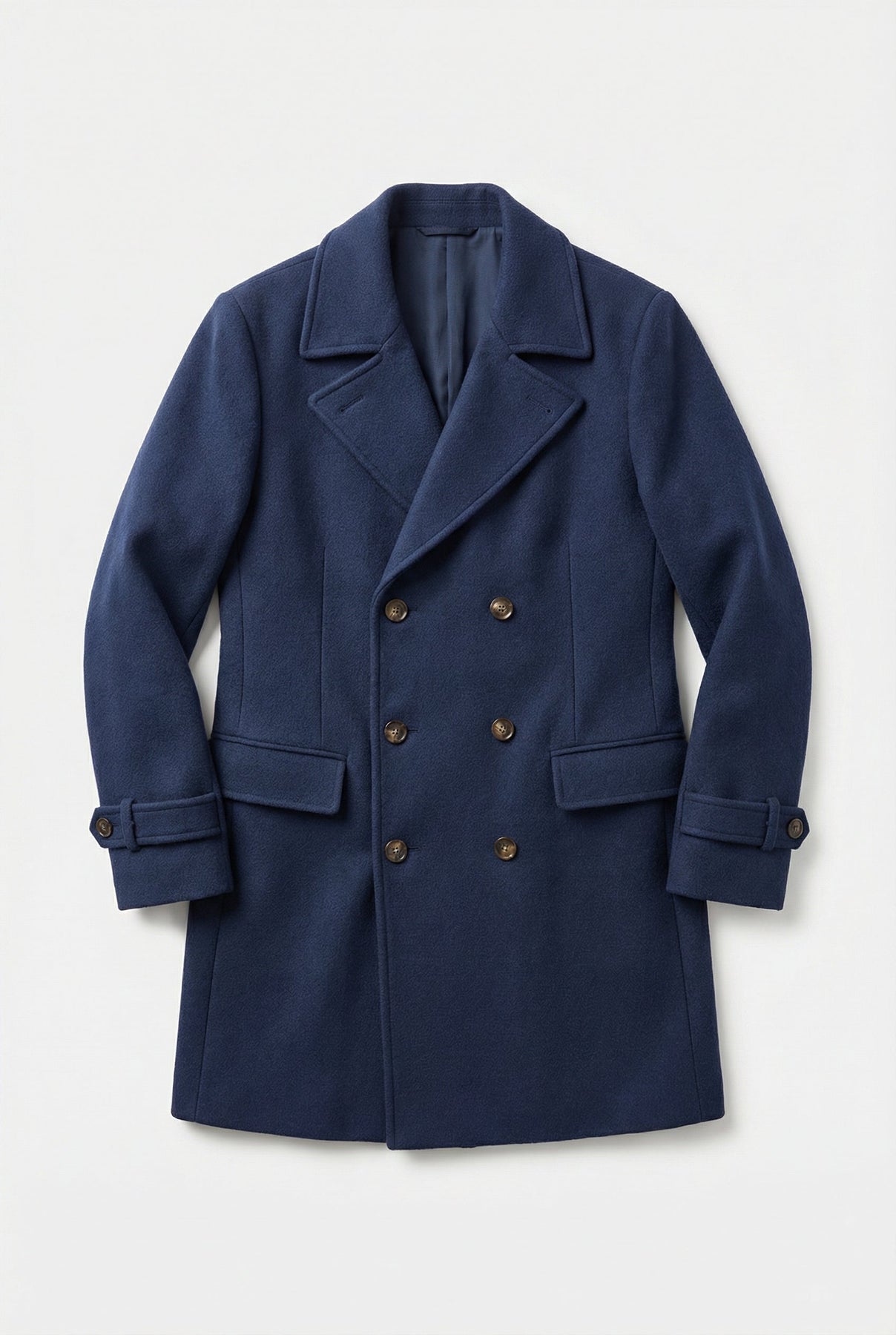 Design : Coupe croisée avec revers et boutons pour un look classique.